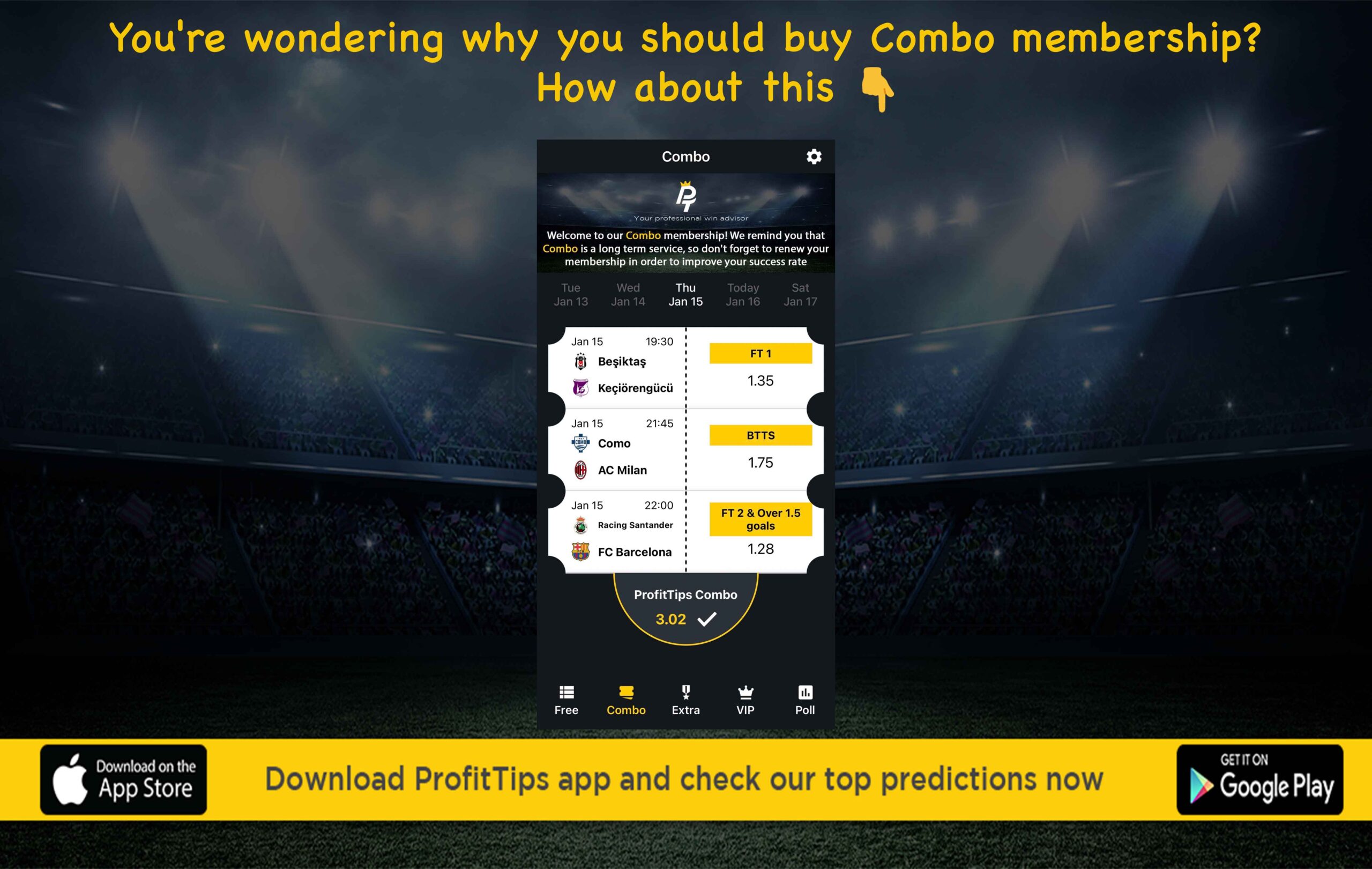 Download the ProfitTips app for free now. Every day, enjoy many football tips with success rates from another level