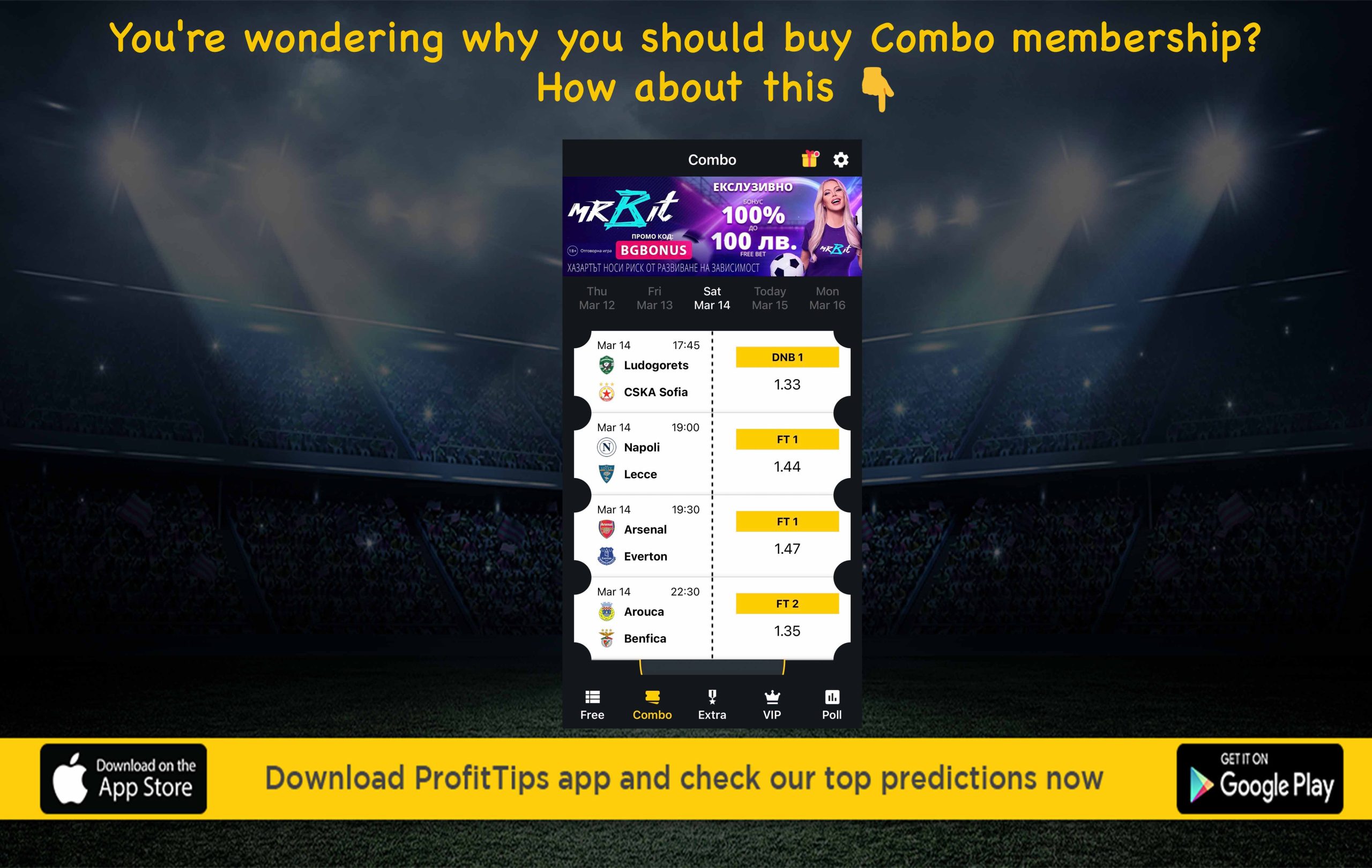 Download the ProfitTips app for free now. Every day, enjoy many football tips with success rates from another level