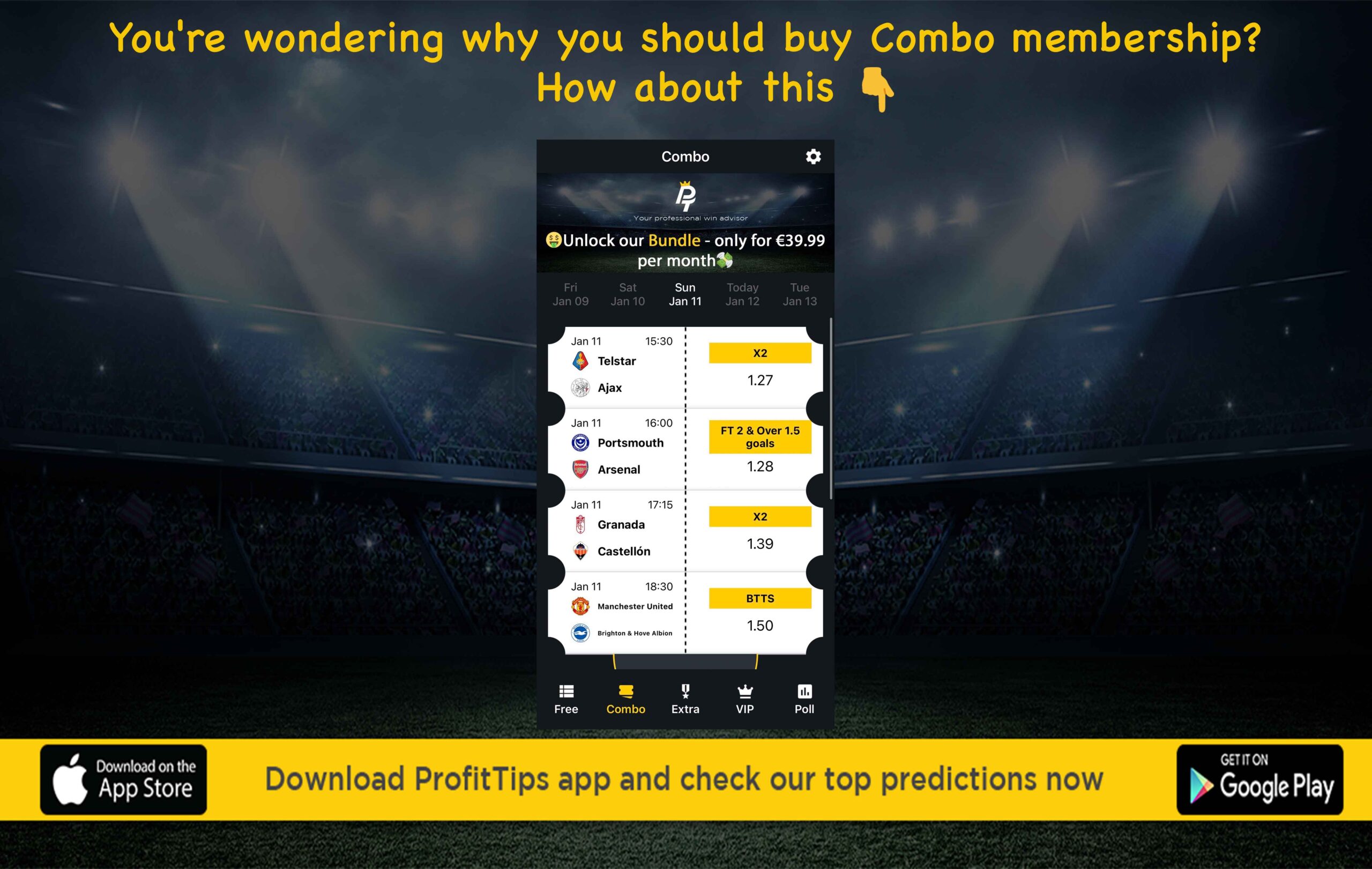 Download the ProfitTips app for free now. Every day, enjoy many football tips with success rates from another level