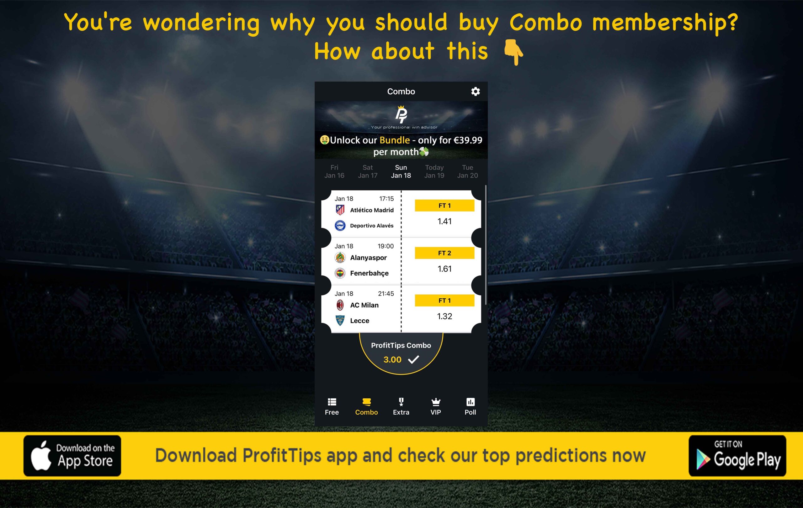Download the ProfitTips app for free now. Every day, enjoy many football tips with success rates from another level
