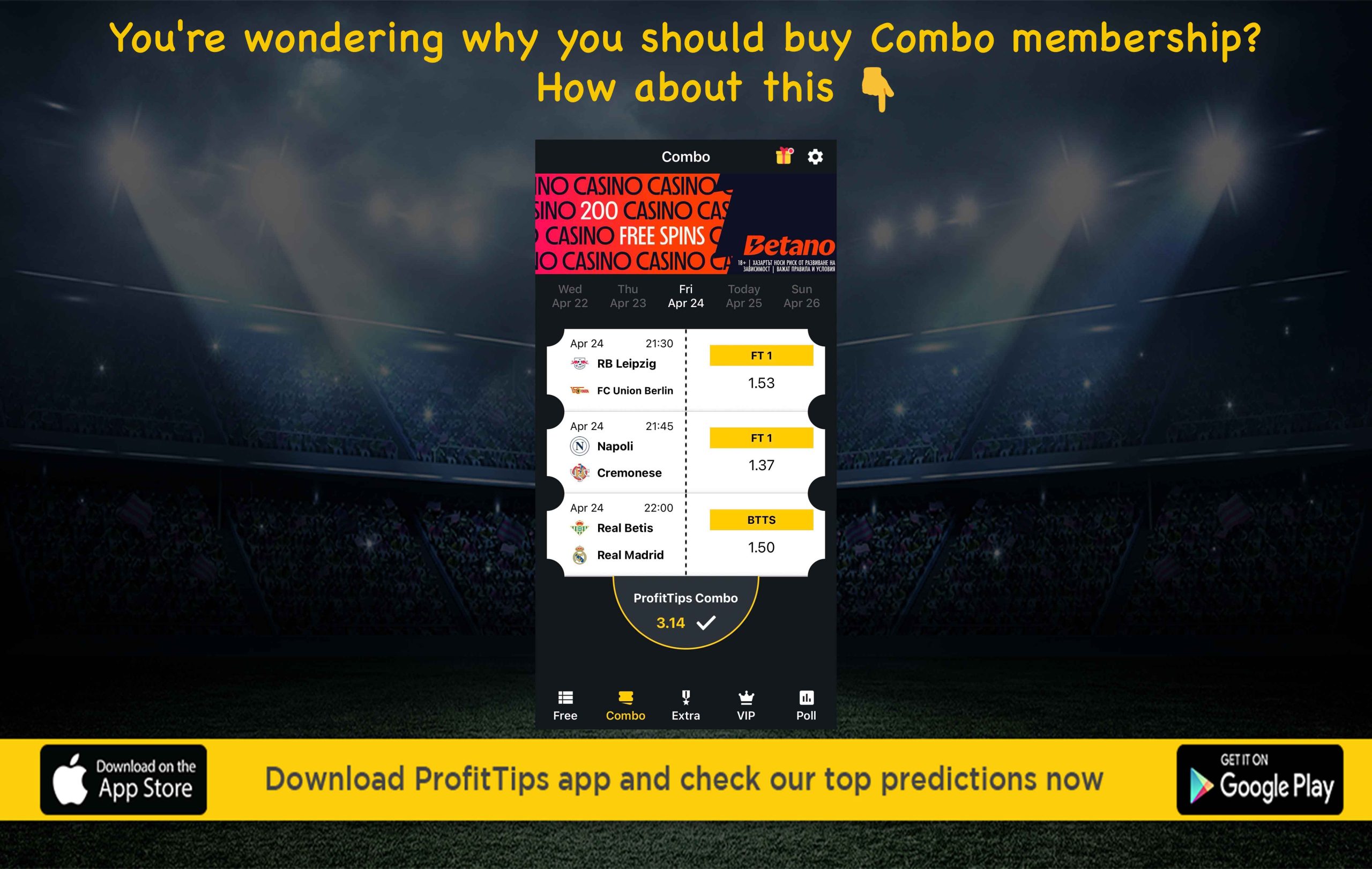 Download the ProfitTips app for free now. Every day, enjoy many football tips with success rates from another level