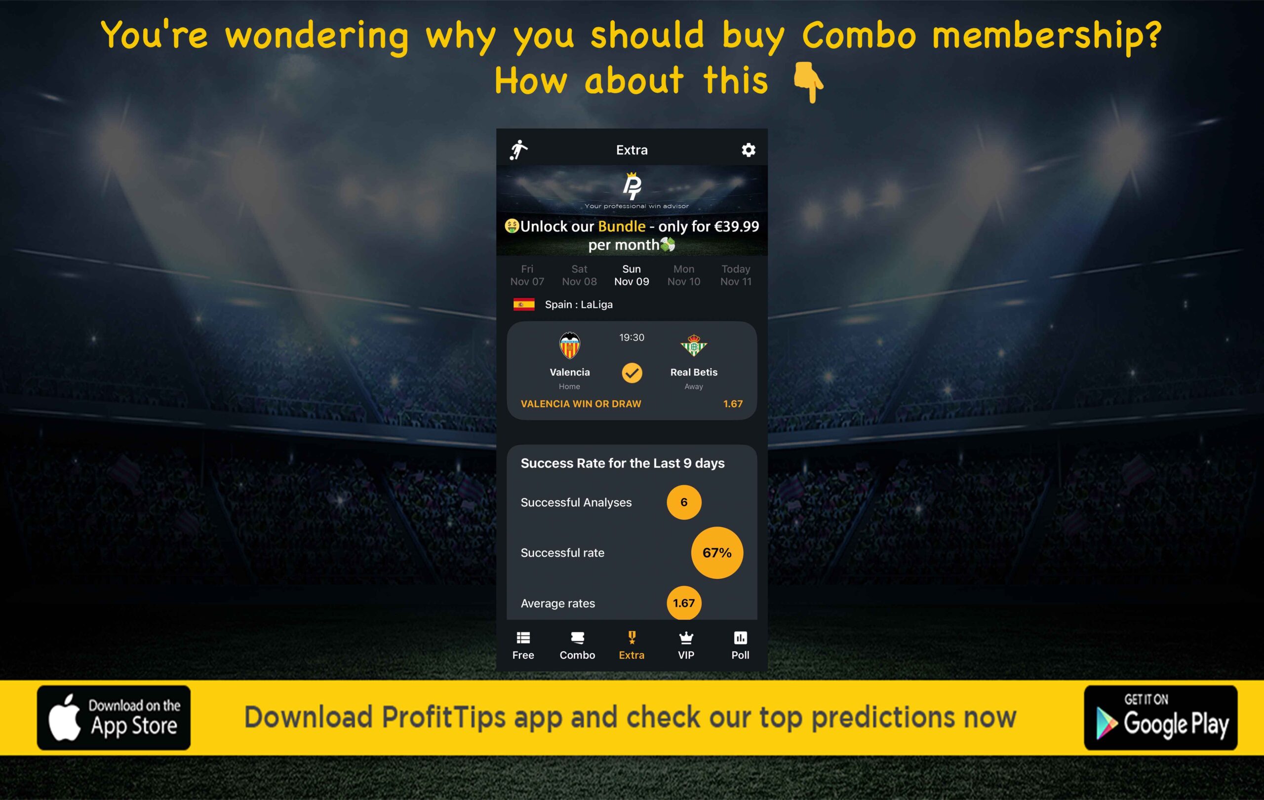 📲 In our new membership EXTRA you can find top single matches with high odds. Grab our Bundle – Combo, Extra and VIP now for our PROMO price €39.99.