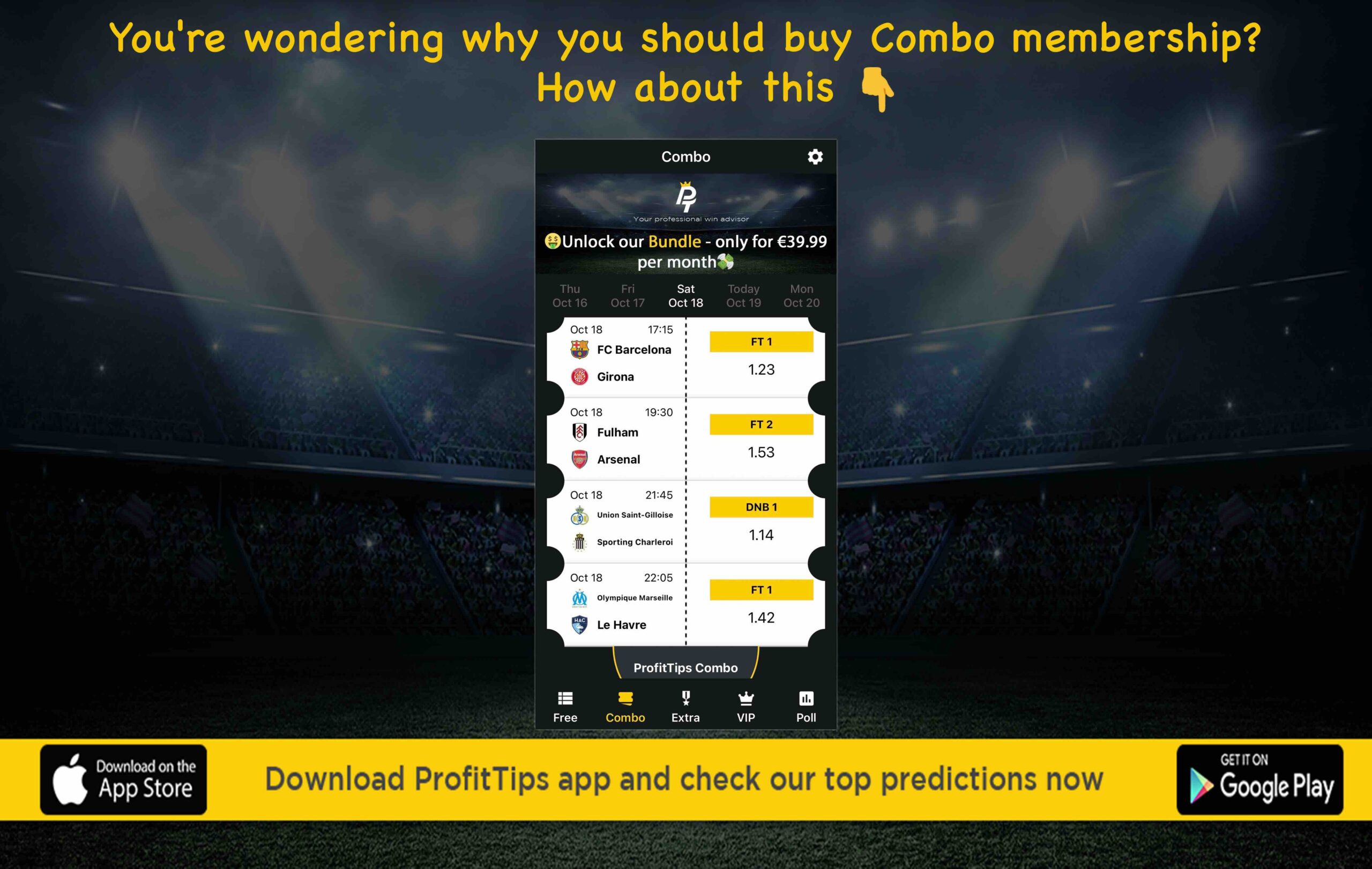 Download the ProfitTips app for free now. Every day, enjoy many football tips with success rates from another level