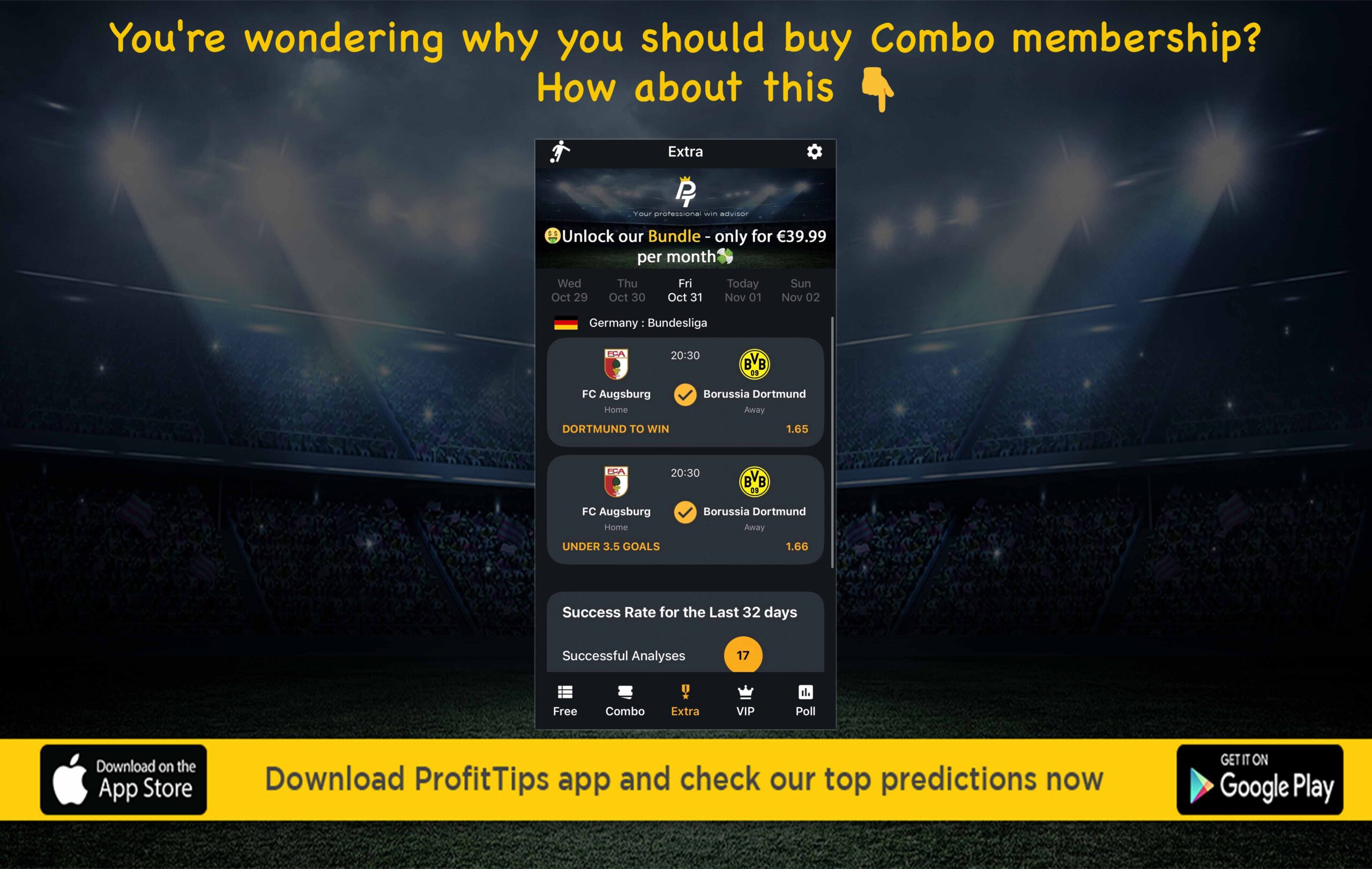 📲 In our new membership EXTRA you can find top single matches with high odds. Grab our Bundle – Combo, Extra and VIP now for our PROMO price €39.99.