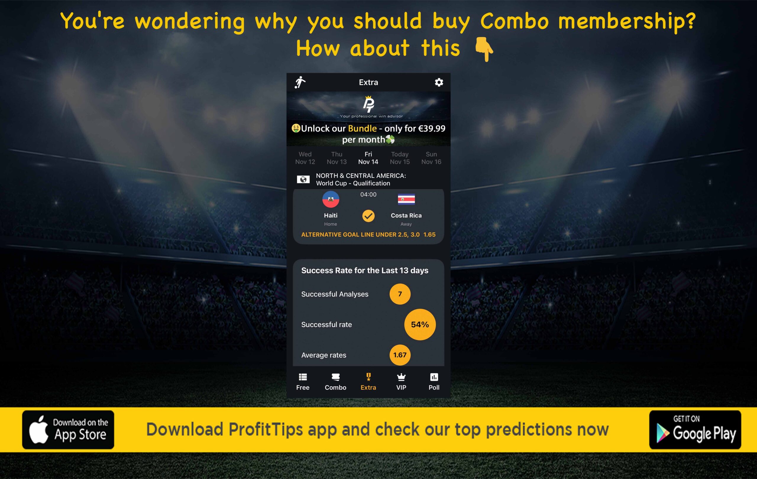 📲 In our new membership EXTRA you can find top single matches with high odds. Grab our Bundle – Combo, Extra and VIP now for our PROMO price €39.99.