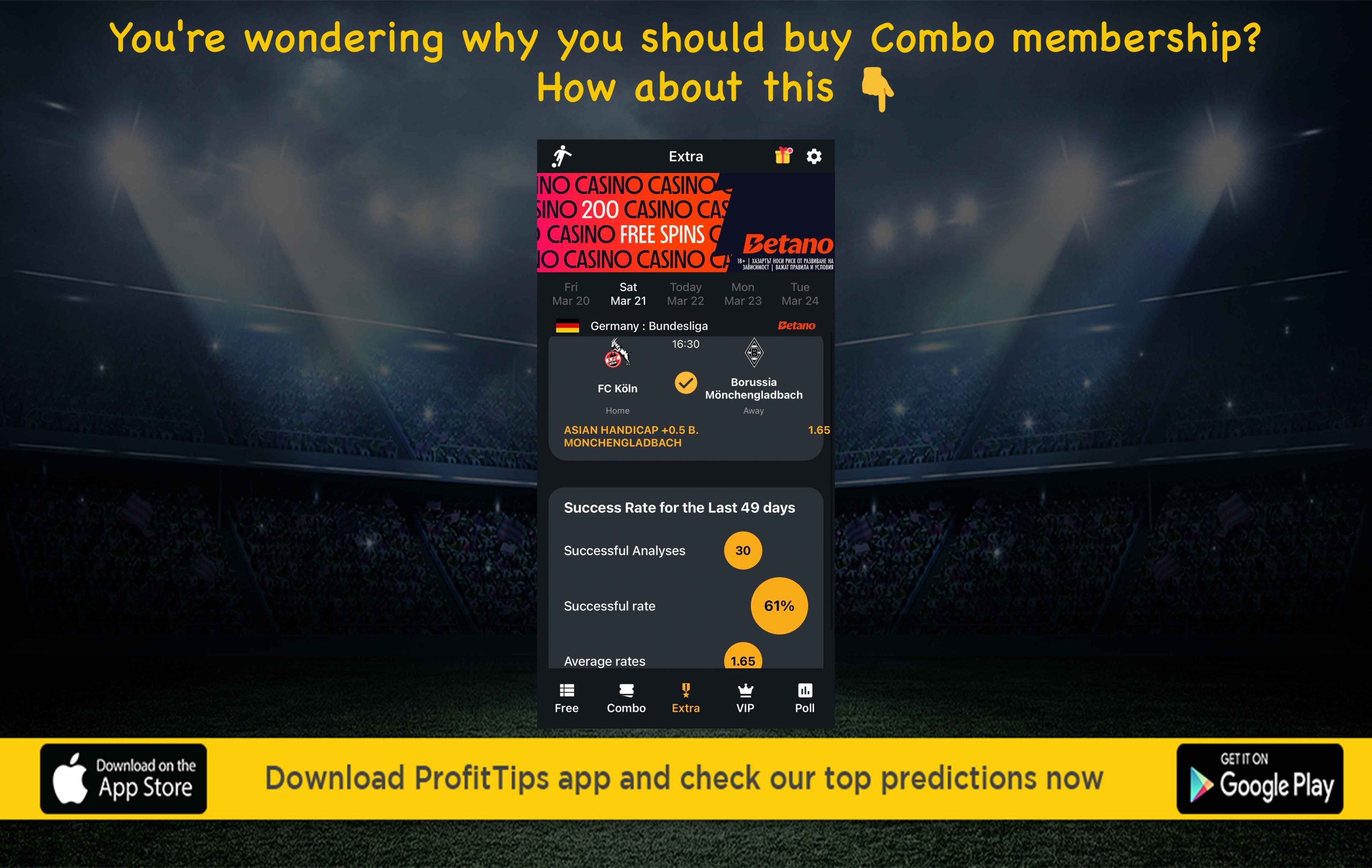 📲 In our new membership EXTRA you can find top single matches with high odds. Grab our Bundle – Combo, Extra and VIP now for our PROMO price €39.99.